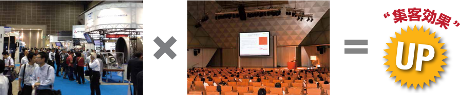 1 シンポジウムステージを本催事会場内に設置 (※)し、集客効果を向上